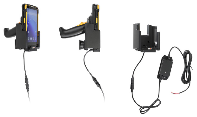 Aktywny uchwyt Brodit do stałego montażu na CipherLab RS38 w gumowym etui i z chwytem pistoletowym