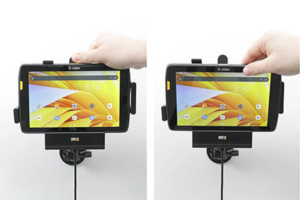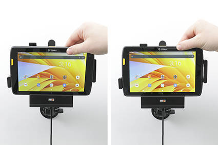 - 713317 - uchwyt aktywny o wzmocnionej konstrukcji do Zebra ET40 8.0. Jest specjalnie dopasowany do urządzeń, które nie są wyposażone w ochronną ramkę.