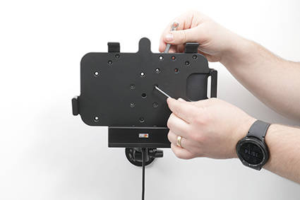 Uchwyt został wykonany z bardzo mocnego i wytrzymałego tworzywa ABS. Zamontuj go do dowolnej płaskiej powierzchni, w samochodzie ciężarowym, w magazynie, na wózku widłowym itp. Uchwyt posiada w swojej tylnej części standardowe otwory AMPS i VESA. Uchwyt nie ogranicza dostępu do kamery, wszystkich przycisków funkcyjnych i portów elektronicznych.