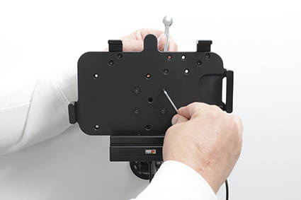 Uchwyt został wykonany z bardzo mocnego i wytrzymałego tworzywa ABS. Zamontuj go do dowolnej płaskiej powierzchni, w samochodzie ciężarowym, w magazynie, na wózku widłowym itp. Uchwyt posiada w swojej tylnej części standardowe otwory AMPS i VESA. Uchwyt nie ogranicza dostępu do kamery, wszystkich przycisków funkcyjnych i portów elektronicznych.