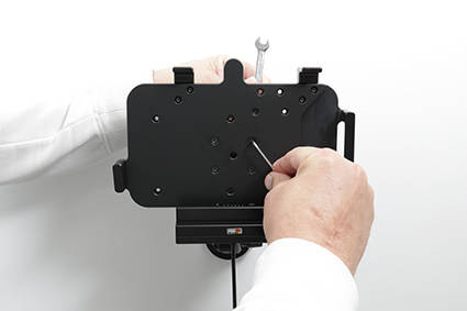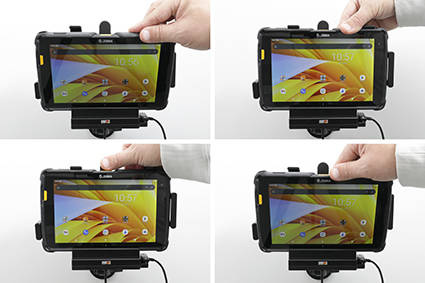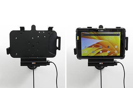 713324 - uchwyt aktywny o wzmocnionej konstrukcji do Zebra ET45 8.0. Jest specjalnie dopasowany do urządzeń, które są wyposażone w ochronną ramkę.