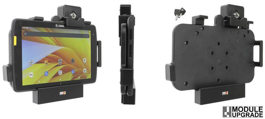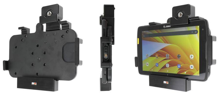 - 739319 - uchwyt pasywny o wzmocnionej konstrukcji z blokadą kluczykową do Zebra ET40 10.0. Jest specjalnie dopasowany do urządzeń, które nie są wyposażone w ochronną ramkę.