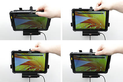 713326 - uchwyt aktywny o wzmocnionej konstrukcji do Zebra ET45 10.0. Jest specjalnie dopasowany do urządzeń, które są wyposażone w ochronną ramkę.