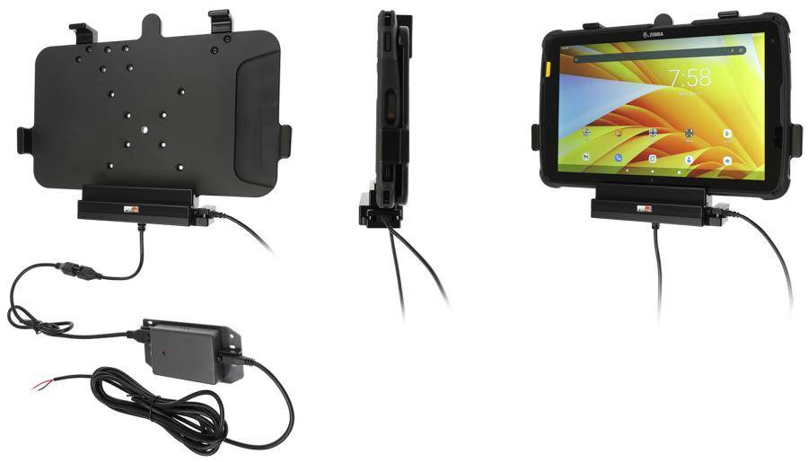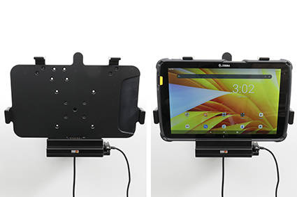 - 713326 - uchwyt aktywny o wzmocnionej konstrukcji z modułem komunikacyjno-ładującym do Zebra ET45 10.0. Jest specjalnie dopasowany do urządzeń, które są wyposażone w ochronną ramkę.