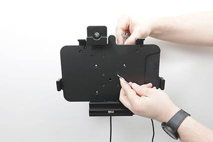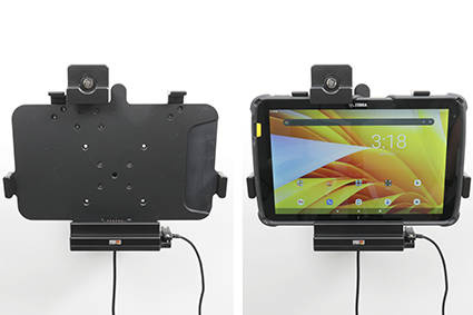 Uchwyt aktywny o wzmocnionej konstrukcji do Zebra ET40 10.0 z modułem komunikacyjno-ładującym i blokadą kluczykową.