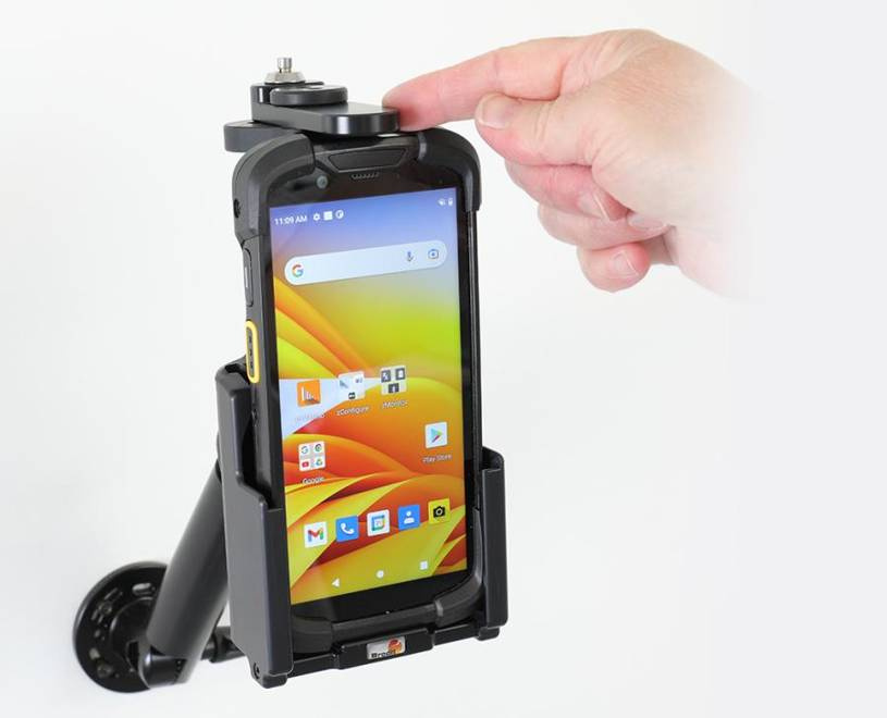 Uchwyt wykonany jest z tworzywa ABS w kolorze czarnym i jest idealnie dopasowany do urządzenia Zebra TC 73.