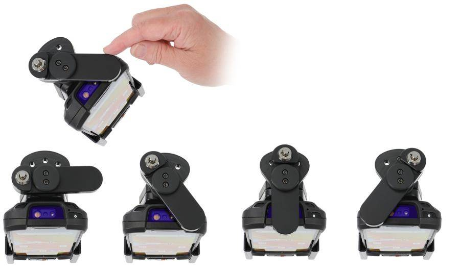 Wbudowana głowica obrotowa umożliwia jego regulację w różnych kierunkach w celu np. uniknięcia odbicia światła na ekranie. Można pochylać urządzeni o 17° oraz obracać o 360°. Płytka montażowa 42x50 z 4 otworami AMPS 4mm.