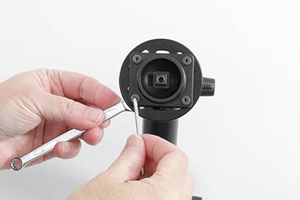Wbudowana głowica obrotowa umożliwia jego regulację w różnych kierunkach w celu np. uniknięcia odbicia światła na ekranie. Można pochylać urządzeni o 17° oraz obracać o 360°. Płytka montażowa 42x50 z 4 otworami AMPS 4mm.