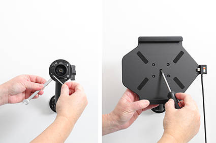 Uchwyt wyposażony jest w głowicę obrotową, która umożliwia jego regulację w różnych kierunkach w celu np. uniknięcia odbicia światła na ekranie. Możesz regulować ustawienie uchwytu o 22° w każdym kierunku. Uchwyt umożliwia jednocześnie ustawienie tabletu w pionie lub w poziomie. Zamontuj swój uchwyt do tabletu na ProClip’ie samochodowym lub na specjalnym uchwycie montażowym do zagłówka.