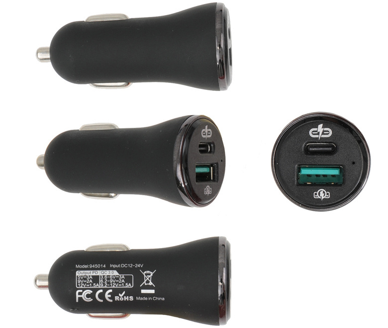 - 945014 - Ładowarka samochodowa do gniazda zapalniczki z dwoma gniazdami (USB-A oraz USB-C).