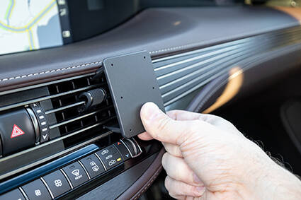 - Bezinwazyjny montaż – nie zostawia śladów na desce rozdzielczej samochodu.