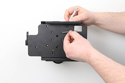 Zamocuj stację dokującą na dowolnej płaskiej powierzchni lub na cokole w wózku widłowym, ciężarówce, pojeździe dystrybucyjnym, magazynie, blacie stołu itp. Płyta tylna z otworami w standardzie AMPS 4 mm i standardowymi otworami VESA 75 4 mm. Wykonane z wysokiej jakości tworzywa ABS i acetalu. Czarny kolor. Wyprodukowano w Szwecji.