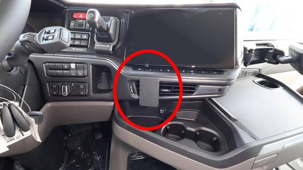 - 856110 wspornik do Scania seria S 2025-2026 do instalacji na desce rozdzielczej. Montaż centralny.