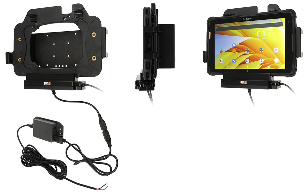 - 713331 Brodit uchwyt aktywny do instalacji stałej do Zebra ET45 8.0. Pasuje do urządzeń z obudową Rugged Boot/Exoskeleton, oryginalnym grzbietem rozszerzającym Zebra. Stacja dokująca do aktualizacji modułów. Z systemem łatwego przełączania i hostem USB.