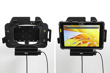 - 713331 Brodit uchwyt aktywny do instalacji stałej do Zebra ET40 8.0. Pasuje do urządzeń z obudową Rugged Boot/Exoskeleton, oryginalnym grzbietem rozszerzającym Zebra. Stacja dokująca do aktualizacji modułów. Z systemem łatwego przełączania i hostem USB.