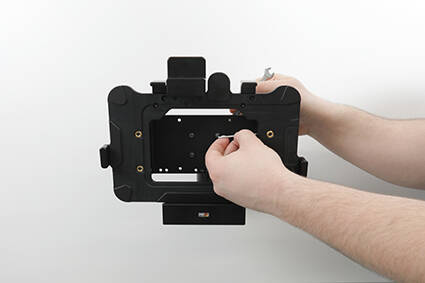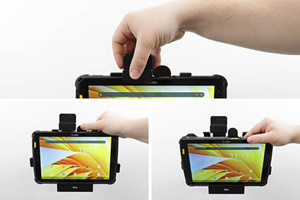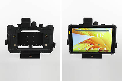 - 741332 - Brodit uchwyt z blokadą sprężynową do Zebra ET45 10.0. Pasuje do urządzeń z Rugged Boot / Exoskeleton. Z otworami AMPS, VESA 75. Stacja dokująca do aktualizacji modułów.