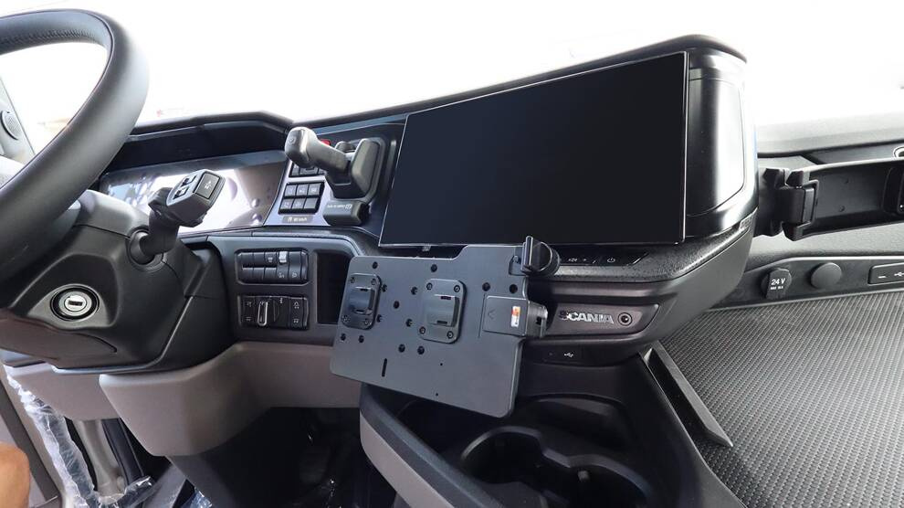 - 856110 wspornik do Scania seria L 2025-2026 do instalacji na desce rozdzielczej. Montaż centralny.