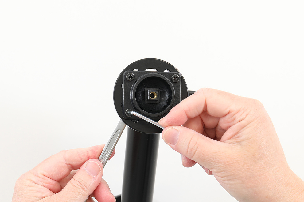 1. Poluzuj śrubę z tyłu uchwytu i zdejmij głowicę obrotową.