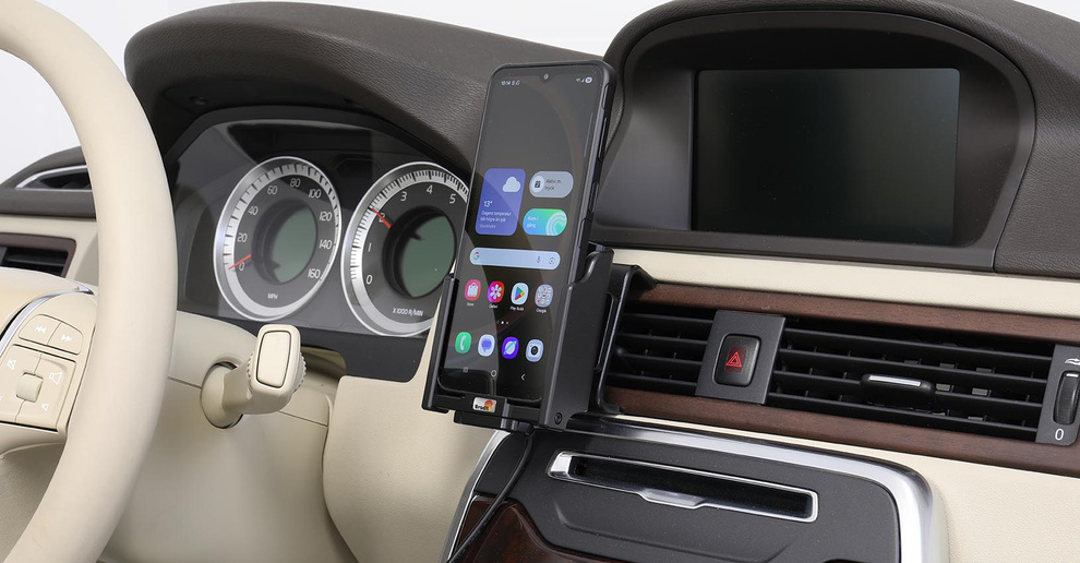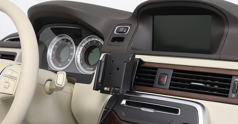 Uchwyt współpracuje z systemem montażowym Brodit ProClip (do nabycia osobno), co oznacza, że można go zamocować bez konieczności wiercenia czy trwałego ingerowania w deskę rozdzielczą. Całość montuje się łatwo, szybko i w pełni bezinwazyjnie.