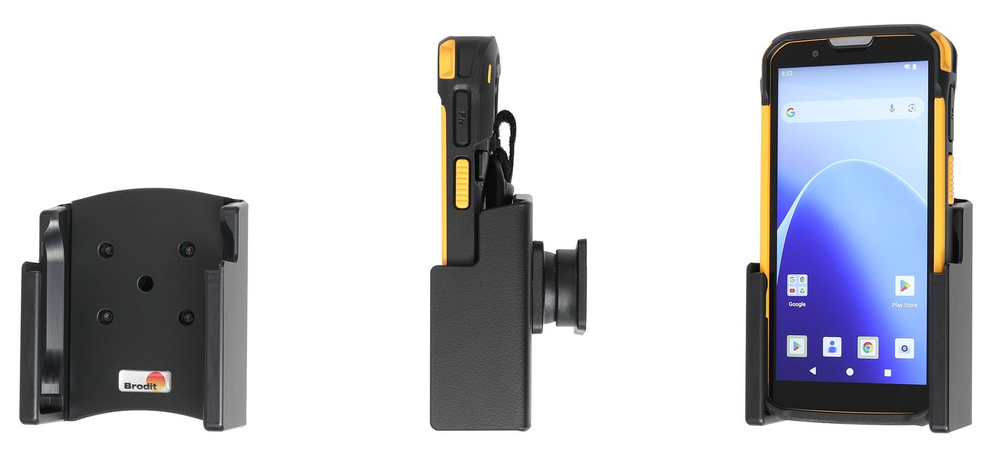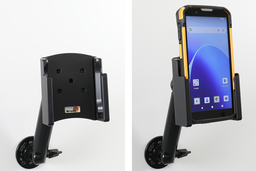 Brodit 711438 to profesjonalny uchwyt zaprojektowany specjalnie do terminali mobilnych wyposażonych w osłonę Protective Rubber Boot (PRS3800X01507) z paskiem ręcznym (handstrap) lub bez niego. W przeciwieństwie do modelu 711440, który jest dedykowany terminalom z chwytem pistoletowym (Pistol Grip), model 711438 został stworzony z myślą o urządzeniach bez takiego uchwytu, oferując idealne, pewne mocowanie terminala oraz pełną funkcjonalność podczas użytkowania w pojeździe.