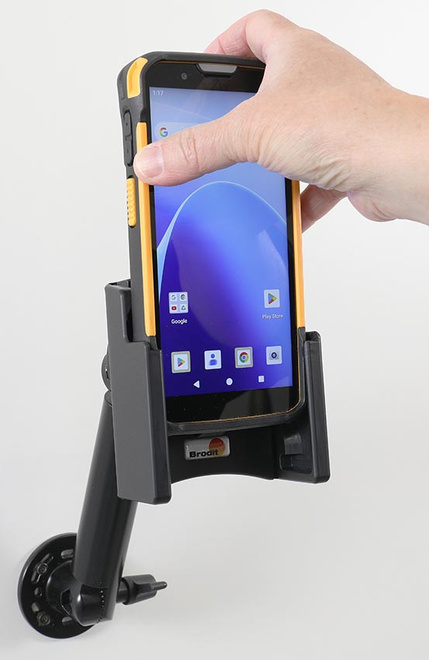• Uchwyt do terminali (model 711438) wyposażonych w gumową osłonę Protective Rubber Boot. Dzięki regulacji kąta widzenia, uchwyt Brodit umożliwia wygodne korzystanie z terminala w każdej pozycji.