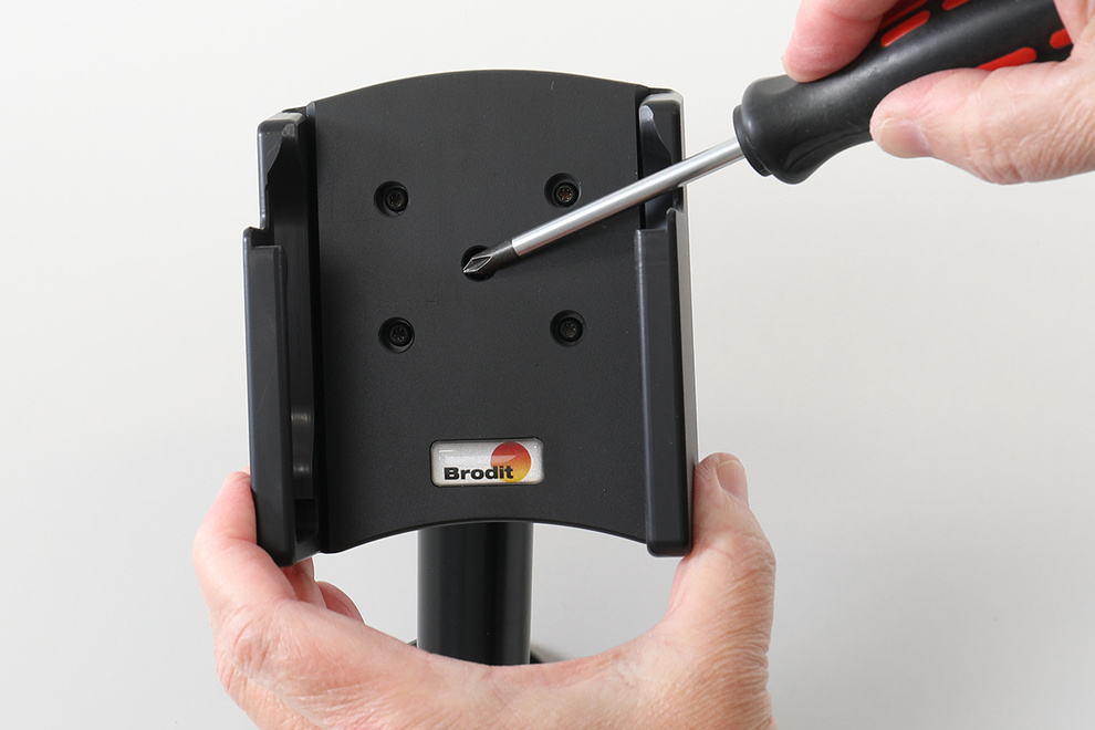 Montaż uchwytu jest niezwykle prosty i uniwersalny – można go zamontować na dedykowanych platformach Brodit ProClip, podstawach typu Pedestal lub bezpośrednio na dowolnej powierzchni za pomocą dołączonych śrub. Dzięki temu uchwyt Brodit 711438 świetnie sprawdza się w różnych pojazdach i konfiguracjach, zapewniając bezpieczne i wygodne mocowanie terminala.