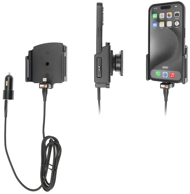 Uchwyt aktywny z kablem USB-C do Apple iPhone 17 w futerale lub bez o wymiarach: 70-83 mm (szer.), 8-12 mm (grubość).