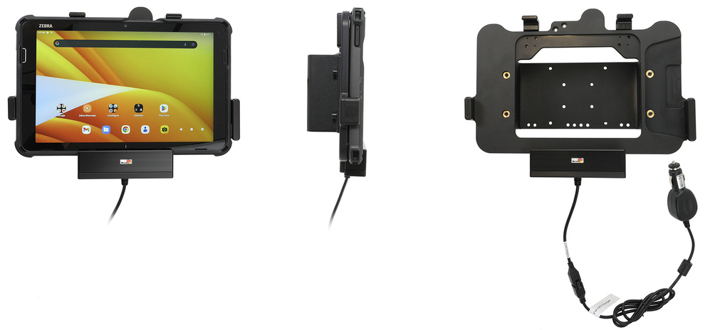 Stacja dokująca może być montowana na dowolnej płaskiej powierzchni lub na dedykowanych podstawach Brodit w wózkach widłowych, ciężarówkach, pojazdach dystrybucyjnych, w magazynach oraz na stanowiskach stacjonarnych. Tylna płyta montażowa wykonana ze stali wyposażona jest w otwory zgodne ze standardami AMPS 4 mm oraz VESA 75 (4 mm), co zapewnia szeroką kompatybilność z systemami montażowymi klasy przemysłowej.