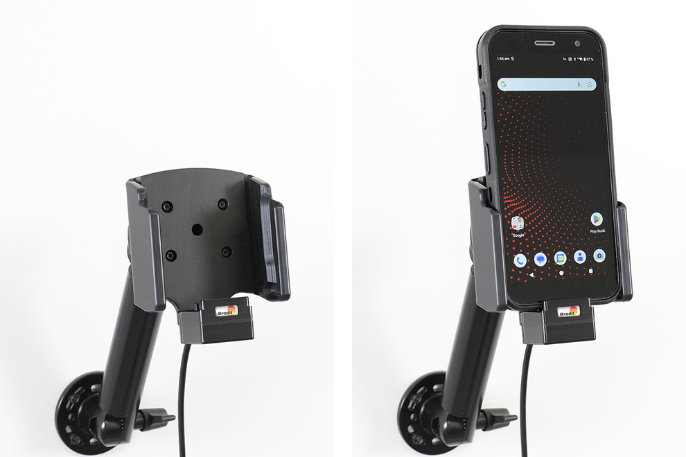 Zintegrowany mechanizm regulacji umożliwia ergonomiczne ustawienie ekranu i redukcję refleksów. Uchwyt posiada pochylenie o 17 stopni oraz obrót o 360 stopni, co ułatwia dopasowanie kąta widzenia oraz szybkie przełączanie pracy w orientacji pionowej i poziomej. Montaż realizowany jest przez płytkę 42 x 50 mm z otworami w standardzie AMPS o średnicy 4 mm, dzięki czemu uchwyt można integrować z popularnymi systemami mocowań stosowanymi w pojazdach, w tym z podstawami słupkowymi i platformami montażowymi.