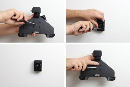 Uchwyt wyposażony jest w głowicę obrotową, która umożliwia jego regulację w różnych kierunkach w celu np. uniknięcia odbicia światła na ekranie. Możesz regulować ustawienie uchwytu o 22° w każdym kierunku. Uchwyt umożliwia jednocześnie ustawienie tabletu w pionie lub w poziomie. Zamontuj swój uchwyt do tabletu na ProClip’ie samochodowym lub na specjalnym uchwycie montażowym do zagłówka.