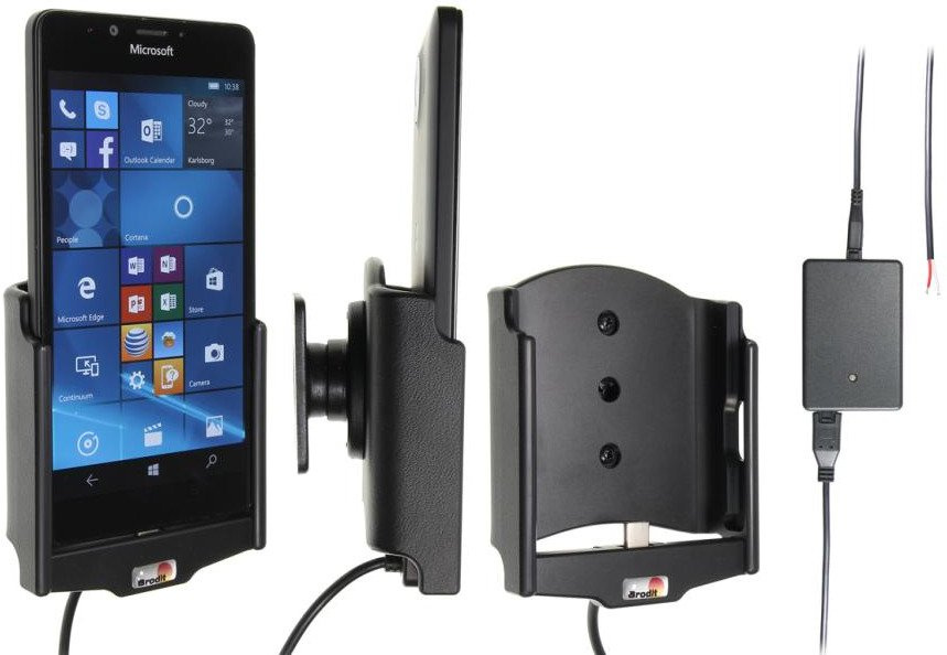 - 513829 - uchwyt aktywny do instalacji na stałe z głowicą obrotową, adapterem Molex oraz 2A ładowarką do Microsoft Lumia 950.