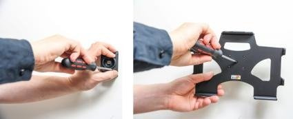 Uchwyt wyposażony jest w głowicę obrotową, która umożliwia jego regulację w różnych kierunkach w celu np. uniknięcia odbicia światła na ekranie. Możesz regulować ustawienie uchwytu o 22° w każdym kierunku. Uchwyt umożliwia jednocześnie ustawienie tabletu w pionie lub w poziomie. Zamontuj swój uchwyt do tabletu na ProClip’ie samochodowym lub na specjalnym uchwycie montażowym do zagłówka.