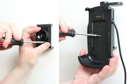 Aktywny uchwyt do instalacji na stałe ładuje Twój terminal, gdy ten znajduje się w uchwycie. Jest on przystosowany do podłączenia pod deską rozdzielczą. Efektem jest dyskretna instalacja bez wiszących, poplątanych kabli wewnątrz auta.