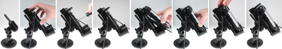 Uchwyt wyposażony jest w głowicę obrotową, która umożliwia jego regulację w różnych kierunkach w celu np. uniknięcia odbicia światła na ekranie. Możesz regulować ustawienie uchwytu o 22° w każdym kierunku. Uchwyt umożliwia jednocześnie ustawienie terminala w pionie lub w poziomie. Zamontuj swój uchwyt do smartfona na ProClip’ie samochodowym.