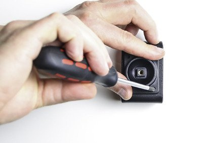 1. Poluzuj śrubę znajdującą się w centralnej części uchwytu, dzięki czemu będziesz mógł odłączyć głowicę obrotową znajdującą się w tylnej części uchwytu.