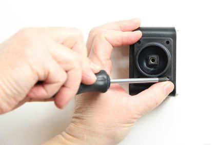 - Umieścić płytkę montażową głowicy obrotowej w żądanym położeniu. Następnie przykręć ją do wybranego miejsca śrubkami, które znajdują się w komplecie.