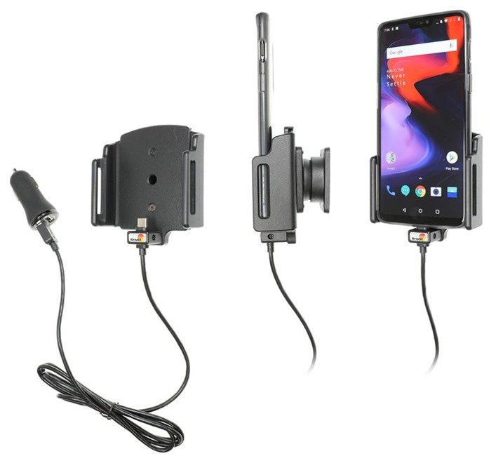 Uchwyt do OnePlus 6 regulowany do smartfonów bez futerału oraz w futerale lub etui o wymiarach: 70-83 mm (szer.), 2-10 mm (grubość) z wbudowanym kablem USB-C oraz ładowarką samochodową