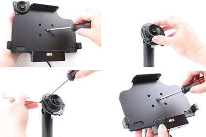 Uchwyt wyposażony jest w głowicę obrotową, która umożliwia jego regulację w różnych kierunkach w celu np. uniknięcia odbicia światła na ekranie. Możesz regulować ustawienie uchwytu o 22° w każdym kierunku. Uchwyt umożliwia jednocześnie ustawienie tabletu w pionie lub w poziomie. Zamontuj swój uchwyt do tabletu na ProClip’ie samochodowym lub na specjalnym uchwycie montażowym do zagłówka.