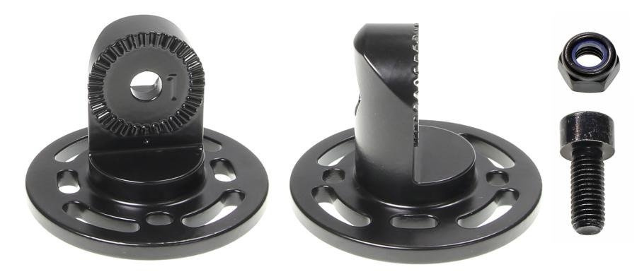 Okrągła podstawa montażowa o średnicy 64 mm, wysokość: 31 mm. Podstawa posiada wstępnie nawiercone otwory. Zestaw zawiera 1 śrubę oraz 1 nakrętkę.