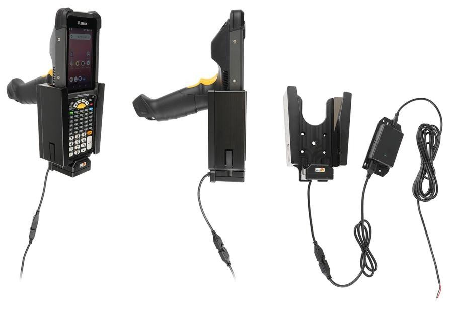 • 713134 - Brodit uchwyt aktywny do instalacji na stałe z głowicą obrotową, adapterem Molex oraz 2A ładowarką do Zebra MC9300.