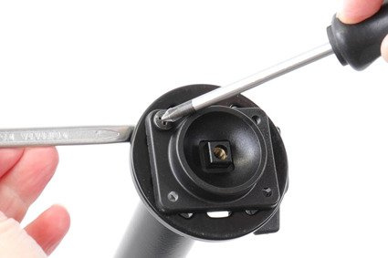 - Poluzuj śrubę znajdującą się w centralnej części uchwytu, dzięki czemu będziesz mógł odłączyć głowicę obrotową znajdującą się w tylnej części uchwytu.