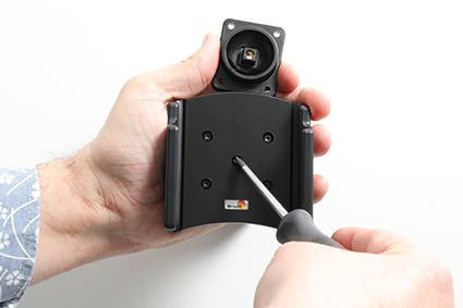 Uchwyt wyposażony jest w głowicę obrotową, która umożliwia jego regulację w różnych kierunkach w celu np. uniknięcia odbicia światła na ekranie. Możesz regulować ustawienie uchwytu o 22° w każdym kierunku. Uchwyt umożliwia jednocześnie ustawienie terminala w pionie lub w poziomie. Zamontuj swój uchwyt do terminala na ProClip’ie samochodowym.