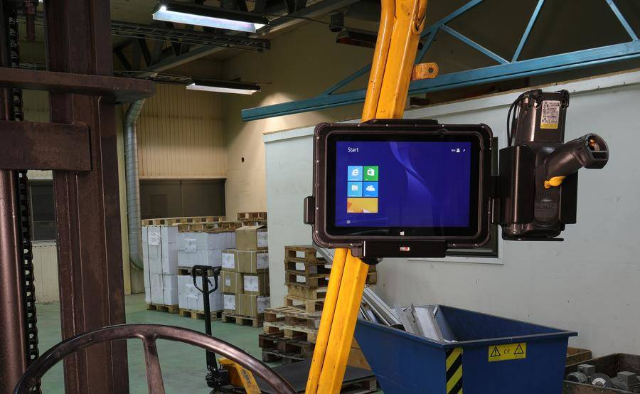 Uchwyt został wykonany z bardzo mocnego i wytrzymałego tworzywa ABS. Zamontuj go do dowolnej płaskiej powierzchni, w samochodzie ciężarowym, w magazynie, na wózku widłowym itp. Uchwyt posiada w swojej tylnej części standardowe otwory AMPS i VESA. Uchwyt nie ogranicza dostępu do kamery, wszystkich przycisków funkcyjnych i portów elektronicznych.