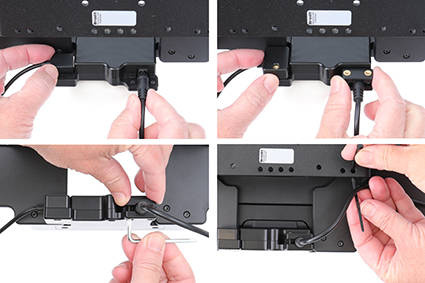 Uchwyt posiada zintegrowaną stację dokującą ,która działa w oparciu o pogo-pin'y, umożliwia ona ładowanie urządzenia oraz podłączenie urządzenia peryferyjnego tj. skaner, drukarka.