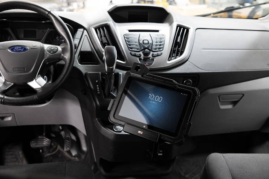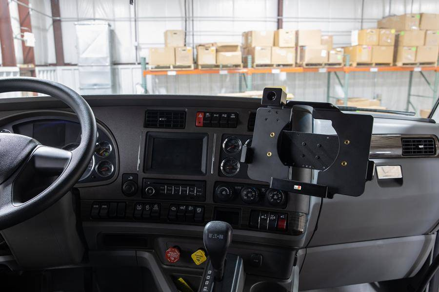 Uchwyt został wykonany z bardzo mocnego i wytrzymałego tworzywa ABS. Zamontuj go do dowolnej płaskiej powierzchni, w samochodzie ciężarowym, w magazynie, na wózku widłowym itp. Uchwyt posiada w swojej tylnej części standardowe otwory AMPS i VESA. Uchwyt nie ogranicza dostępu do kamery, wszystkich przycisków funkcyjnych i portów elektronicznych.