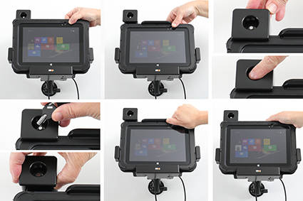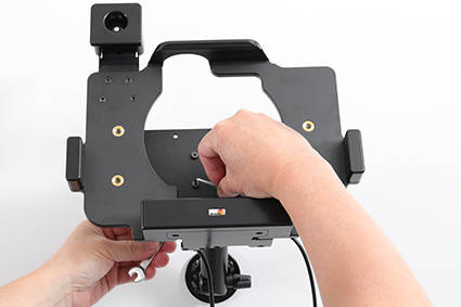 Uchwyt został wykonany z bardzo mocnego i wytrzymałego tworzywa ABS. Zamontuj go do dowolnej płaskiej powierzchni, w samochodzie ciężarowym, w magazynie, na wózku widłowym itp. Uchwyt posiada w swojej tylnej części standardowe otwory AMPS i VESA. Uchwyt nie ogranicza dostępu do kamery, wszystkich przycisków funkcyjnych i portów elektronicznych.