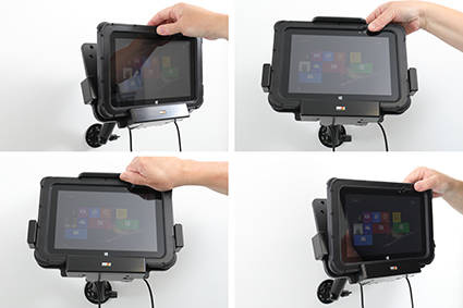 Uchwyt został wykonany z bardzo mocnego i wytrzymałego tworzywa ABS. Zamontuj go do dowolnej płaskiej powierzchni, w samochodzie ciężarowym, w magazynie, na wózku widłowym itp. Uchwyt posiada w swojej tylnej części standardowe otwory AMPS i VESA. Uchwyt nie ogranicza dostępu do kamery, wszystkich przycisków funkcyjnych i portów elektronicznych.