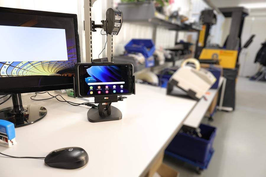 712225 - uchwyt z ładowarką samochodową oraz głowicą obrotową do Samsung Galaxy Tab Active 2, SM-T390/SM-T395 w oryginalnym futerale.