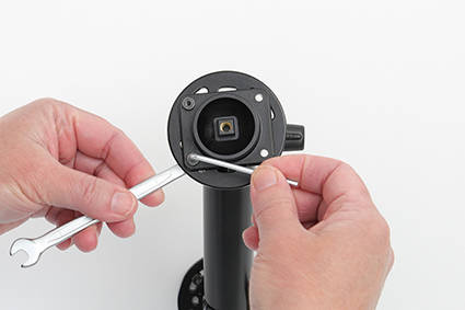 - Umieścić płytkę montażową głowicy obrotowej w żądanym położeniu. Następnie przykręć ją do wybranego miejsca śrubkami, które znajdują się w komplecie.
